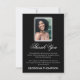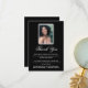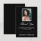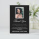 Tarjeta de agradecimiento de funeral que presenta un clásico fondo negro, una foto de su ser querido y una plantilla de agradecimiento de simpatía personalizada que se edita fácilmente.