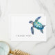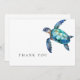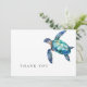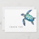 Tarjeta de agradecimiento por funeral y duelo. Nombre de la familia y agradecimiento en la parte posterior. Tipografía. Acuarela. Sencillo. Tortuga marina tropical. Nombre del difunto y años de vida.