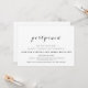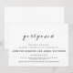 Para parejas que desean un diseño de boda simple pero elegante. Elke Clarke © El diseño incluye los nombres de la novia y el novio en una fuente de escritura elegante con la palabra "aplazado". Mostrado en negro y blanco, pero se puede personalizar según los colores de su boda para el texto y el fondo. Agregue otros gráficos, fotos o monogramas para personalizar esta plantilla.