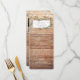 Un bonito menú boda con el nombre de la novia y del novio, la fecha boda y los platos de personalizable con letras a mano y estampados a mano en romero de color agua, todo ello con un fondo de madera de granero templado. El reverso muestra su foto y espacio para añadir una nota personalizado, o borrar fácilmente la foto y nota. Sencillo y elegante, con un ambiente rústico de moda, se coordina con gusto con muchos de los estilos bodas actuales.