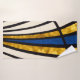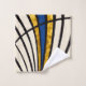 Sencillo, moderno, elegante, líneas negras, rayas de oro verticales, triángulo azul, fondo crema