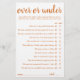 Simple "Over or Under?", una ducha de bebé o un juego de preguntas de fiesta con un divertido guión con letras a mano. El diseño clásico incluye un moderno superpuesto de tipografía con letras a mano. Para otros colores o productos a juego, por favor visite la tienda JustFharryn Zazzle, o contacte con el diseñador, c/o Fharryn@yahoo.com Todos los derechos reservados. #bohochic #zazzlemade