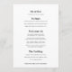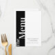 Moderno y sencillo boda de texto blanco y negro para cenas o paquete de cartas en rack especial para menús de eventos. Edite este menú de 4 platos con sus propias palabras. Carta moderna y tipográfica sencilla. Ideal para un simple boda en blanco y negro o para un evento con temática mono. © Design www.mylittleedenweddings.com