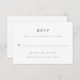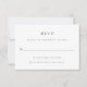 La tarjeta RSVP es el complemento perfecto de esta moderna y sencilla suite de invitados a la boda, diseñada para que se ajuste perfectamente a cualquier estilo de celebración. Su diseño minimalista y su diseño en blanco y negro depurado completan los temas bodas contemporáneos y tradicionales. Con una tipografía elegante y elegante y un diseño optimizado, la tarjeta RSVP se mezcla sin esfuerzo con una variedad de estética boda, desde asuntos exteriores casuales hasta celebraciones clásicas y formales. Tanto si se trata de una reunión urbana moderna como de un evento atemporal y elegante, esta versátil tarjeta garantiza que los detalles de sus bodas se presenten con una sofisticación subestimada.