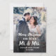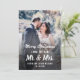 ¿Casados y radiantes? Un sencillo diseño de foto personalizada para recién casados para el nuevo Sr. y Sra. que celebran su primera Navidad juntos. Reemplace la imagen con una foto vertical de la alegre pareja casada. Puede ser la foto de la boda o algo más. El texto de caligrafía con tipografía elegante se puede personalizar y adaptar con su propio mensaje personalizado. Por ejemplo, Felices Fiestas se puede cambiar a Feliz Navidad, Saludos de la temporada o algo más. El diseño moderno y elegante es suyo para personalizar como desee.