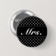 Señora divertida botón del pinback para la novia que acaba de conseguir casada. Desgaste en el fiesta del bachelorette, día de boda, recepciones nupciales. Diseño blanco y negro con clase del modelo de lunar. Texto elegante de Personalizable y color de fondo elegante. También disponible como Sr.