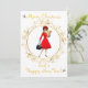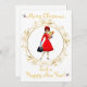 Dama de Navidad de 1950 Vintage con un vestido rojo con un saludo de Feliz Navidad