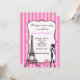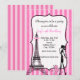Señora en París Torre Eiffel Invitación de Caniche Rosa. Agregue su propia información, elimine cualquier área de texto para dejarla en blanco.