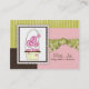Pasteles, galletas y dulces - ¡oh, mi! Deguste su diente dulce con estas fantasiosas tarjetas de negocios de Kustom By Kris. Cuentan con una sabrosa cesta de caramelos y un montón de papel de chatarra. Mostrado aquí con la especialidad de Zazzle Pearl Cardstock. Este diseño también está disponible con un pastel de boda: