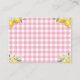 Complete su paquete de ducha para bebés con esta elegante y práctica tarjeta de gabinete "Wrap in Clear". Con un tamaño perfecto de 3,5 x 2,5, esta tarjeta es una encantadora adición a su papelería de eventos. Con un diseño limpio y sencillo, en tonos suaves, rosa y amarillento inspirado en la limonada rosa, se coordina con gusto con cualquier tema de la ducha para bebés. El mensaje anima a los clientes a envolver sus regalos en un embalaje claro, añadiendo un toque de atención a las festividades. Completamente editable, esta tarjeta le permite personalizar del texto para su ocasión especial mientras mantiene las cosas organizadas y con estilo. Perfecto para una ducha de bebé tan dulce y sin costuras como puede ser.