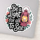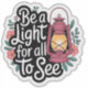 Este encantador pegatina presenta la sincera frase "Sé una luz para que todos la vean" en letras caprichosas, de estilo manuscrito, que se curva suavemente alrededor de una bella linterna vintage ilustrada. La linterna brilla cálidamente en el centro, simbolizando la orientación, la bondad y la fuerza interior. En sus alrededores hay flores coloridas y hojas verdes que aportan una suave belleza natural al diseño. Perfecto para el viaje, la decoración de portátiles o el obsequio, este pegatina es un recordatorio suave para brillar brillantemente y traer luz al mundo que lo rodea.