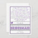 ¿Serás mi dama de honor? Tarjeta poética morada/gr