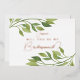 Pregúntale a tus damas de honor de la manera más elegante y sincera con esta tarjeta de "¿Serás mi dama de honor?" con foil de rosa dorado, hermosamente acentuada con hojas verdes botánicas. Este impresionante diseño combina la sofisticación moderna con el encanto natural, haciéndolo perfecto para cualquier boda romántica, boho o inspirada en el jardín.