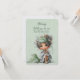Una hermosa tarjeta de propuesta para Dama de las Flores con una joven niña de dibujos animados sentada entre hojas verdes que caen.