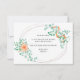 El diseño presenta un suave acuarela de tallos eucaliptos y una floral de naranja/melocotón con cinta de casquillo. La parte trasera está formada por un diseño de coordinación y un elegante marco oval de color dorado, adornado con tallos eucaliptos acuáticos y una cinta de melocotón/naranja. Los elementos coincidentes para completar la colección de eventos están disponibles en nuestra tienda Zazzle!