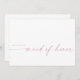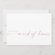 Este diseño minimalista es perfecto para la novia moderna. Con un guión de firma manuscrita, acompañado de un sencillo tipo de letra sans-serif, en un color rosa rubor para un sutil toque de color. Personalice con su propio mensaje en la parte posterior, o ordene en blanco y escriba a mano su mensaje. ¡Mira la tienda para ver las tarjetas de la dama de honor!