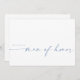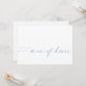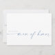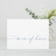 Este diseño minimalista es perfecto para la novia moderna. Con un guión de firma manuscrita, acompañado de un sencillo tipo de letra sans-serif en un azul polvoriento para un sutil pop de color. Personalice con su propio mensaje en la parte posterior, o ordene en blanco y escriba a mano su mensaje. ¡Visita la tienda para ver las tarjetas de honor, doncella de honor y patrón de honor!