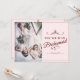 ¿Serás mi dama de honor? Tres damas de honor tendidas con ramos de trajes rosas y suaves delante de una ventana. El texto de fondo se puede ajustar en la plantilla. Foto de Valerie Elash