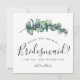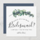 El diseño botánico rústico elegante y minimalista comienza con una rama verde de eucalipto entrelazada con bayas privadas azul marino. ¿Serás mi dama de honor? Puedes cambiar a la dama de honor por chica de flores, criada de honor o cualquier otro título. Esta tarjeta de presentación de la fiesta nupcial forma parte de la colección Eucalyptus, que contiene muchas otras plantillas de boda DIY que puede utilizar para crear un paquete de papel boda personalizado. Si no ves un enlace a la colección o necesitas ayuda con un elemento, por favor contacta conmigo.