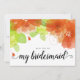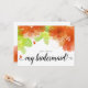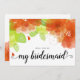 "¿Serás mi dama de honor?", naranja eéthéal floral tarjeta de boda de primavera. Un diseño de bonito que muestra flores naranjas con hojas verdes y estilo de escritura cursiva caligrafía manuscrita.