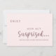 Sorprenda a sus mejores amigos con una propuesta graciosa pero elegante de dama de honor usando esta tierna tarjeta de caligrafía de guion rosa. Diseñada con una estética minimalista, de moda bovina e inspirada en la cosecha, esta tarjeta "Now Act Surprised Like You Was This Was Coming" (Ahora actúa sorprendido como si no tuvieras idea de que esto llegara) es la forma perfecta de plantear la cuestión con estilo con caligrafía, esta tarjeta editable e imprimible combina elementos clásicos, románticos y modernos, lo que la convierte en ideal para bodas de otoño, invierno, primavera o verano. Ya sea que el tema de tu novia sea chic, glamuroso, de cuento de hadas o minimalista, este lujoso y formal pero divertido apoyo a la dama de honor añade un toque único y elegante a tu caja de fiestas de bodas. Perfecto para las duchas bohemias, elegantes y elegantes, este guión negro en blanco con una tarjeta táctil rosa suave es un recuerdo eterno que a tus novias les encantará.