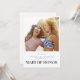 Si te gusta el clásico, este diseño sencillo es perfecto para ti. Esta tarjeta presenta un diseño elegante, con un fondo blanco y espacio para una foto personalizada. El clásico tipo de letra en blanco y negro bajo la imagen es moderno y sencillo. ¡Una adición perfecta a tus regalos de dama de honor!