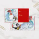 Pintado original de color pastel caprichoso, pintado en tonos rojos azules y blancos, muñeco de nieve y pingüino tocando violín en la nieve de invierno con flores rojas, florido.de Bulgan Lumini (c)