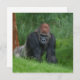 En esta emocionante imagen, un poderoso gorila de respaldo silvestre se alza en la exuberante hierba verde, con la mirada fijada hacia delante con un árbol solitario en el fondo.