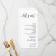 SERENITY menú moderno minimalista de boda en blanco y negro con elegantes nombres de autor. Personalice los detalles del menú con letras de moda. Diseñado por Thisisnotme©