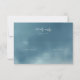 Esta tarjeta de respuesta de bodas presenta un diseño minimalista con un suave fondo degradado azul pastel que transita desde un azul cielo profundo hasta un blanco azulado pálido, creando una atmósfera serena y elegante. La disposición es centrada y equilibrada, enfatizando la legibilidad con un amplio espacio negativo alrededor de los elementos de texto. La tipografía juega un papel clave, utilizando una escritura cursiva para un tono invitador y fuentes sans-serif limpias para mayor claridad en los campos personalizables. El estilo general es contemporáneo y despejado, perfecto para transmitir un ambiente suave y accesible adecuado para ocasiones formales.