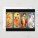 este bonito conjunto de 4 doncellas que retratan espléndidamente las cuatro estaciones es el práctico trabajo de Alfons Maria Mucha 1860-1939, más conocido como Alphonse Mucha padre de la pintura Art Nouveau. Era un artista chech conocido mejor por su estilo distintivo muy audaz, especialmente por sus anuncios. Era un artista prolífico y produjo muchas pinturas, ilustraciones, anuncios, postales, en lo que se conoció como Art Nouveau. Las obras de Mucha a menudo presentaban a hermosas jóvenes mujeres con túnicas de aspecto vagamente neoclásico, como se ve aquí a menudo rodeadas de flores exuberantes que a veces formaban halos detrás de la cabeza de las mujeres. este arte se titula "The Seasons", alrededor de 1900, y aquí se muestra su tercer grupo de paneles decorativos y se convirtió en uno de sus más populares. De hecho, era tan popular que se le pidió que produjera al menos dos conjuntos más basados en el mismo tema. desafortunadamente, los diseños para otros dos conjuntos también existen pero nunca se completaron.
