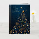 Navidades elegantes y abstractos con diseño de tarjetas con fondo azul oscuro y oro