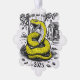 Una tarjeta de Año Nuevo vibrante y única que presenta una imagen simbólica de una serpiente. La serpiente, representada en brillantes tonos amarillos contra un fondo blanco y negro, representa sabiduría, fuerza y nuevos comienzos asociados con el próximo año 2025. El mensaje de "Feliz Año Nuevo" enfatiza el espíritu festivo y agrega un deseo para un feliz Año Nuevo. ¡Una elección ideal para los amantes de los diseños originales y audaces! Comparta este regalo para enviar sus deseos de vacaciones a amigos y familiares de una manera elegante y memorable.