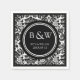 Servilletas personalizables para bodas en un patrón damasco floral moderno y romántico en negro y blanco chic y elegante. Cambie la fuente o el color a su elección para que coincida con los colores de su boda. Contáctenos para un patrón de color personalizado.