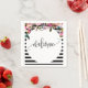 Servilleta de cóctel de papel floral a rayas blanc