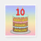 Este alegre y divertido diseño de servilletas de papel con temática de cumpleaños presenta una representación al estilo personalizado de una torta de cumpleaños de tres niveles con velas en forma de numeral en la parte superior que muestran el número "10", junto con el mensaje "FELIZ DÍA DE NACIMIENTO 10", y un nombre de destinatario personalizado. El fondo presenta un diseño multicolor de gradiente inspirado en el espectro arcoiris pastel. Las servilletas de papel como estas pueden ser usadas cuando alguien celebra su décimo cumpleaños. [~Z0000623]