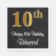 Este sofisticado, lujoso y elegante diseño de servilletas de papel con temática de cumpleaños presenta un gran número ordinal "10" con un aspecto imitación/falso de inspiración dorada, junto con el mensaje de bienvenida de cumpleaños "Feliz 10 cumpleaños", y un nombre personalizado con un tipo de letra estilo script. El fondo es negro de color. Las servilletas de papel como esta pueden ser usadas para celebrar el décimo cumpleaños de alguien. [~Z0000516]