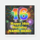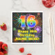 Este divertido y emocionante diseño de servilleta de papel de cumpleaños presenta un gran número "16" con un colorido patrón inspirado en el gradiente del espectro del arco iris, junto con el mensaje "Feliz 16 cumpleaños", y un nombre personalizado. El fondo presenta un colorido estallido de fuegos artificiales de celebración inspirado en el. Las llamativas servilletas de papel como esta podrían ser usadas cuando se organiza una fiesta de cumpleaños para alguien en celebración de su 16º cumpleaños. [~Z0000574]