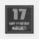 Este estilo vintage, inspirado en el estilo de los años 20-1930, presenta un gran estilo Art Déco inspirado en el número "17", el mensaje "FELIZ CUMPLEAÑOS 17", un nombre personalizado, y un patrón de borde compuesto de líneas. Unas toallas de papel personalizadas y divertidas como esta pueden ser usadas en una celebración que se lleva a cabo para honrar el 17 cumpleaños de alguien. [~Z0000395]