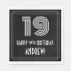 Este diseño inspirado en el estilo de los años 20-30 presenta un gran estilo Art Déco inspirado en el número "19", el mensaje "FELIZ CUMPLEAÑOS 19", un nombre personalizado, y un patrón de borde compuesto por líneas. Las servilletas de papel con temas de cumpleaños como esta pueden ser divertidas de usar en un fiesta que se celebra el cumpleaños 19 de alguien. [~Z0000395]