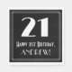 Este estilo vintage y el inspirado diseño de la servilleta de papel con temática de cumpleaños Roaring Twenties presentan un gran estilo Art Déco inspirado en el número "21", el mensaje "Happy 21st Birthday", un nombre personalizado, y un patrón de frontera que consiste en líneas delgadas. Las servilletas de papel con temas de cumpleaños como esta podrían ser usadas en un fiesta celebrando el 21 cumpleaños de alguien. [~Z0000461]