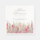 La decoración de la mesa es perfecta para una fiesta de cumpleaños en agosto. El gladiolo rosado es la flor de nacimiento de ese mes. Forma una acuarela de bonito en el borde inferior de esta servilleta floral personalizada. El invitado de cumpleaños del honor, su nombre, edad y fecha de nacimiento se colocan encima de él usando una caligrafía y tipografía elegantes. Todo el texto es editable.