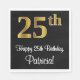 Este sofisticado, elegante y elegante diseño de servilletas de papel de cumpleaños presenta un gran número ordinal "25th" con un aspecto imitación/falso de inspiración dorada, junto con el mensaje de bienvenida de cumpleaños "Feliz cumpleaños número 25" y un nombre de personalizable con un tipo de letra estilo script. También tiene un fondo de color negro. Las servilletas de papel como esta podrían ser usadas para celebrar el 25º cumpleaños de alguien. [~Z0000516]