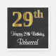 Este elegante, lujoso y sofisticado diseño de servilletas de papel con temática de cumpleaños cuenta con un gran número ordinal "29th" con un aspecto falso/imitación de oro, además del mensaje de bienvenida de cumpleaños "Feliz cumpleaños 29th", y un nombre editable con un tipo de letra estilo script. También tiene un fondo de color negro. Las servilletas de papel como esta podrían ser usadas para celebrar el 29º cumpleaños de alguien. [~Z0000516]