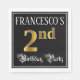 Este elegante y lujoso diseño de servilletas de papel de cumpleaños incluye un nombre personalizado y el mensaje "Fiesta de cumpleaños 2". El gran número "2nd" tiene un patrón de color inspirado en el oro de imitación/faux, las palabras "Birthday Party" están en un texto ornamentado de escritura, y el fondo es negro de color por defecto (aunque se puede personalizar). Las servilletas de papel elegantes y ordenadas como esta podrían ser usadas en una celebración/fiesta de cumpleaños que se lleva a cabo en celebración del segundo cumpleaños de alguien. [~Z0000565]