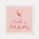 Como ves, esta servilleta de cumpleaños única y elegante tiene una plantilla bien diseñada. Con un chica de cócteles dibujado a mano roja con un nombre escrito a mano. Todo en un fondo rosado. Lo que puede personalizar fácilmente al pulsar el botón de personalización.
