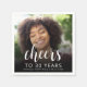 Esta servilleta de cumpleaños número 30 del personalizado presenta la foto personalizada, nombre y cumpleaños del invitado de honor, junto con la palabra "Cheers" en un elegante guión de caligrafía blanca. Una pantalla oscura ayuda a hacer que el texto aparezca. ¡Una gran manera de celebrar a alguien que cumple treinta años!