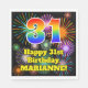 Este alegre y excitante diseño de pañales de papel con temática de cumpleaños presenta un gran número "31" con un colorido patrón inspirado en el gradiente del espectro arcoiris. También incluye el mensaje "Feliz cumpleaños número 31", y un nombre editable. El fondo presenta un emocionante y colorido estampado de fuegos artificiales de celebración. Las servilletas de papel con temas de cumpleaños como esta pueden ser divertidas de usar en un fiesta que está siendo retenido por alguien que está celebrando su cumpleaños número treinta. [~Z0000574]