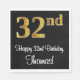 Este sofisticado, lujoso y elegante diseño de servilletas de papel de cumpleaños presenta un gran número ordinal "32nd" con un aspecto de imitación/falso dorado, junto con el mensaje de bienvenida de cumpleaños "Feliz cumpleaños número 32" y un nombre personalizado con un tipo de letra estilo script. También tiene un fondo de color negro. Unas servilletas elegantes de papel como esta pueden ser divertidas de usar en una fiesta de cumpleaños en honor al 32 cumpleaños de alguien. [~Z0000516]