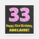 Este alegre y divertido diseño de servilletas de papel con temática de cumpleaños presenta un gran número "33" con un patrón rayado que contiene formas cardíacas de color rosa claro y rosa oscuro. También incluye el mensaje de bienvenida de cumpleaños "Feliz cumpleaños número 33", y un nombre de personalizable. Las servilletas de papel como esta pueden ser divertidas de usar en la fiesta de 33 años de alguien. También puede ser una elección divertida para alguien que tiene un cumpleaños que cae sobre el El día de San Valentín (14 de febrero), debido a sus adorables símbolos del corazón y colores. [~Z0000436]